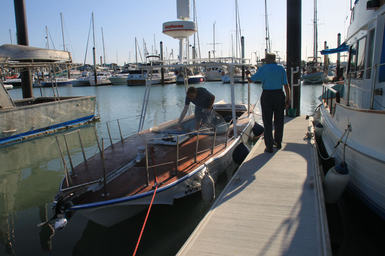 I received some pictures from Margaret Owen Jones of a Volga from Queensland, Australia. It's a 1964 Volga with the original 6 cylinder engine and V-drive. The boat has clearly been adjusted for the temperatures and the scorching sun in the land of Oz - sun-roof, wooden deck, all white color. I will ask for more details and pictures...