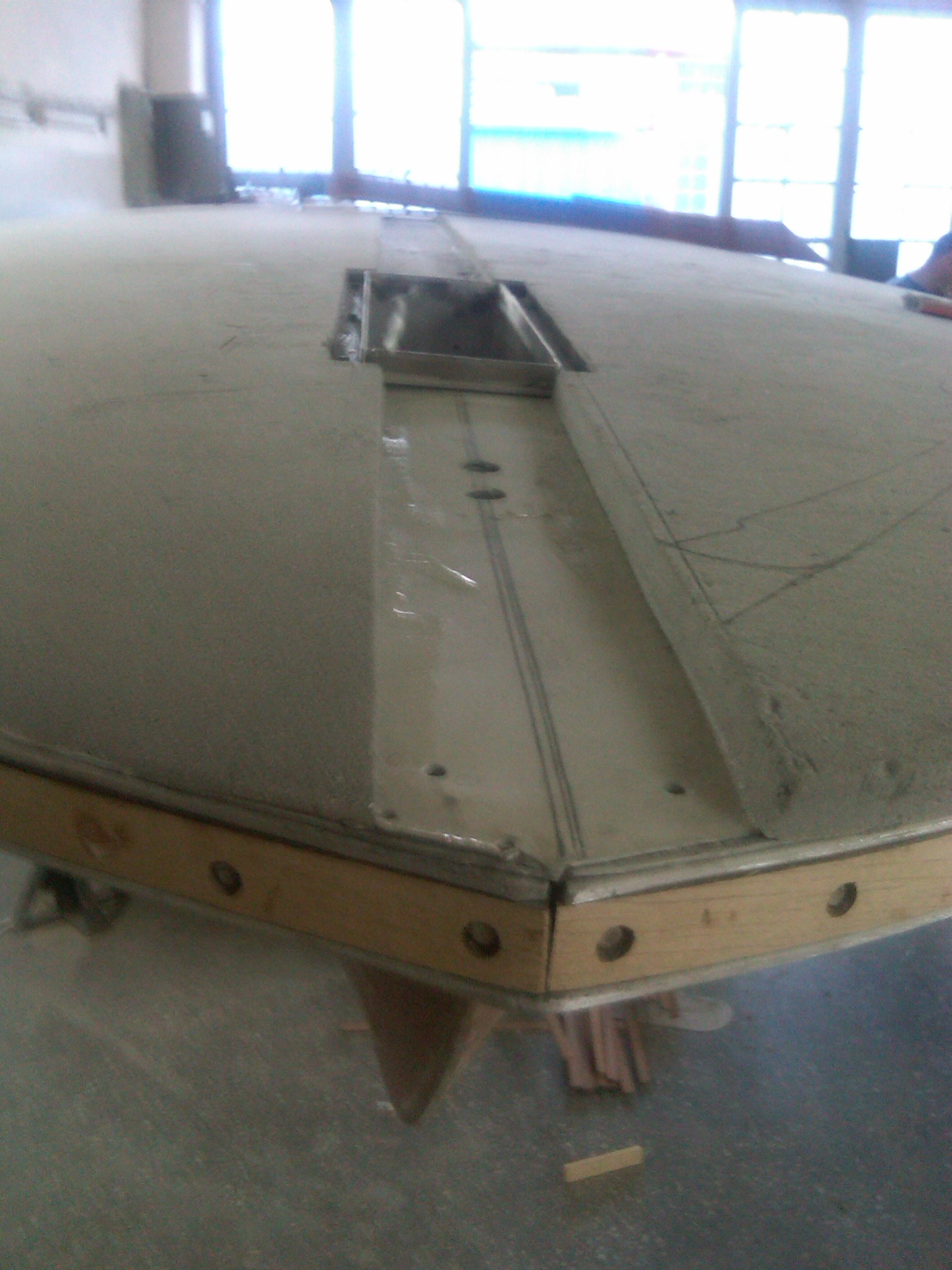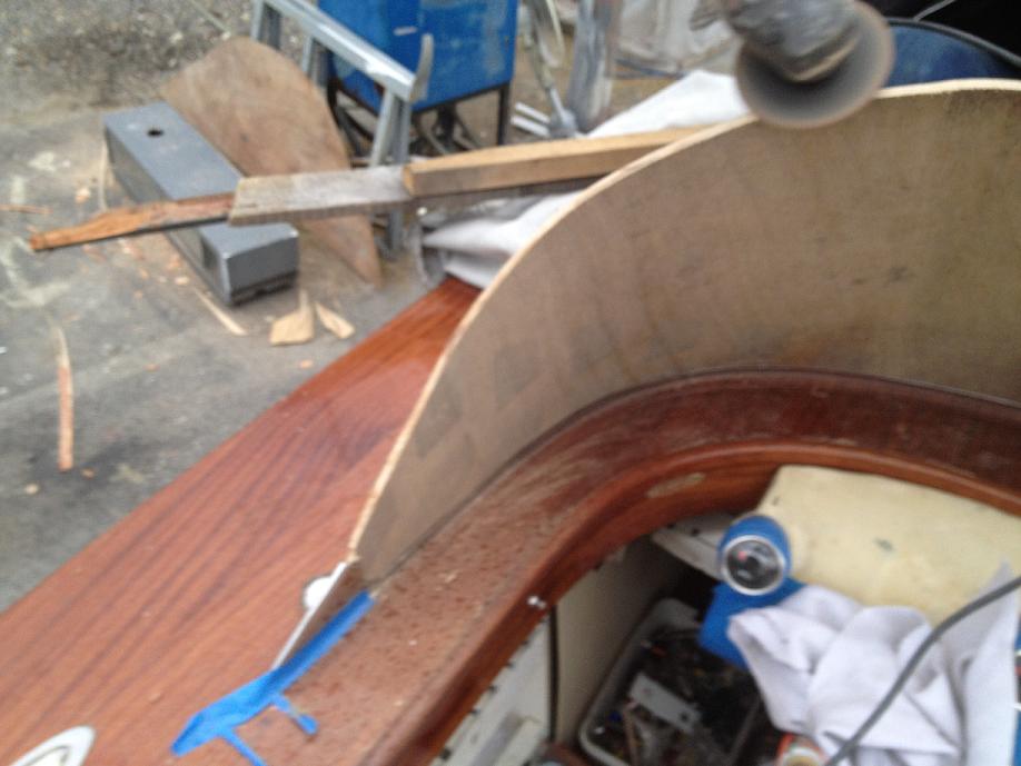 and epoxy resin. This was then also sanded. The deck was now completely even, 22 - 25 mm higher than original and with a rounder shape.