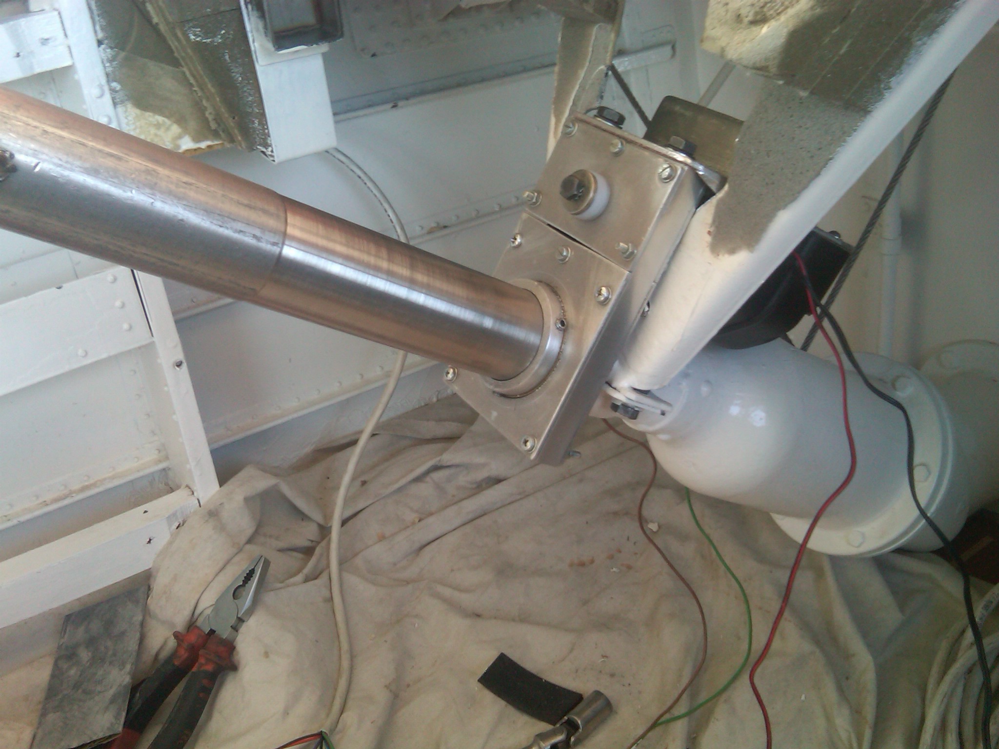 We were fearing that it will touch the shaft, but it was thouching the housing of the aluminium cast steering housing. So there were 5 mm to 8 mm too much we had to the jigsaw to cut it away. A cover was glued on the opening.