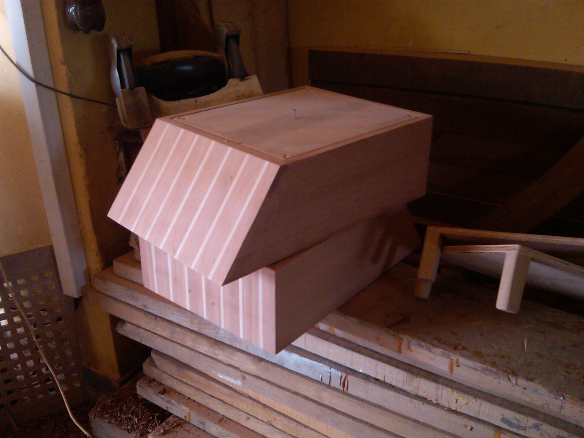 The original place for the batteries was used. However, we use two batteries and place on a wooden plate. The cover shall have non visible hinges.
