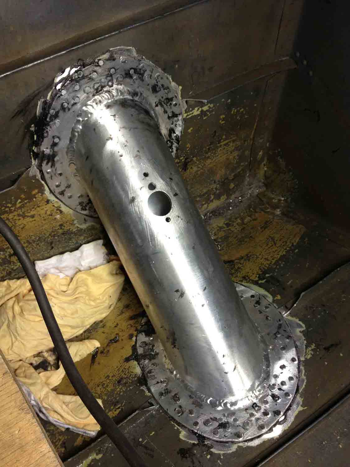 Today i made the flanges and welded them on to the tunnel. Since it is only 2mm thich i have made a reinforcement around the motor mount.