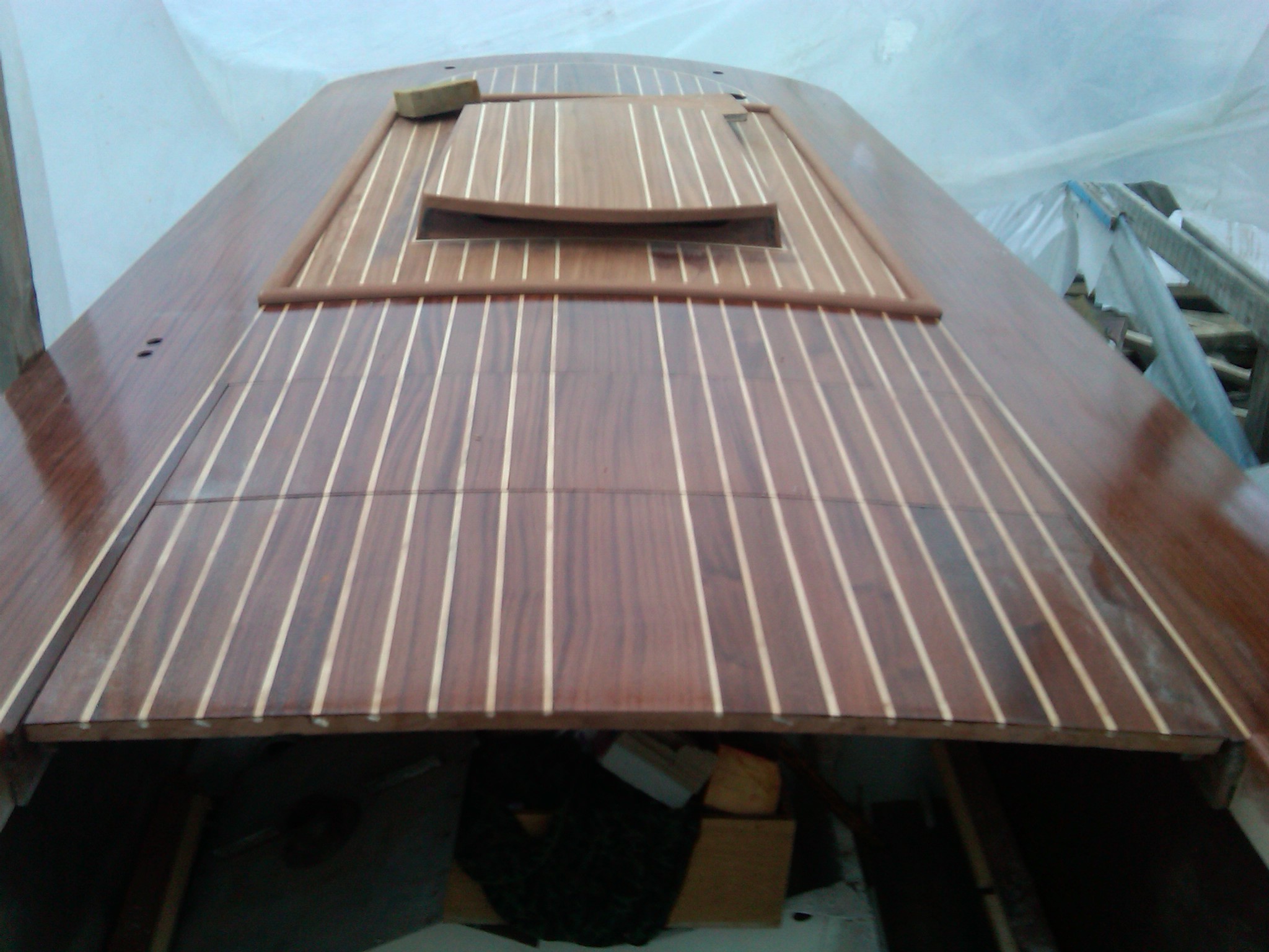 The wooden deck design was copied and/or refined from other Volgas or Rivas. We started with the edges where there used to be the rub rails.