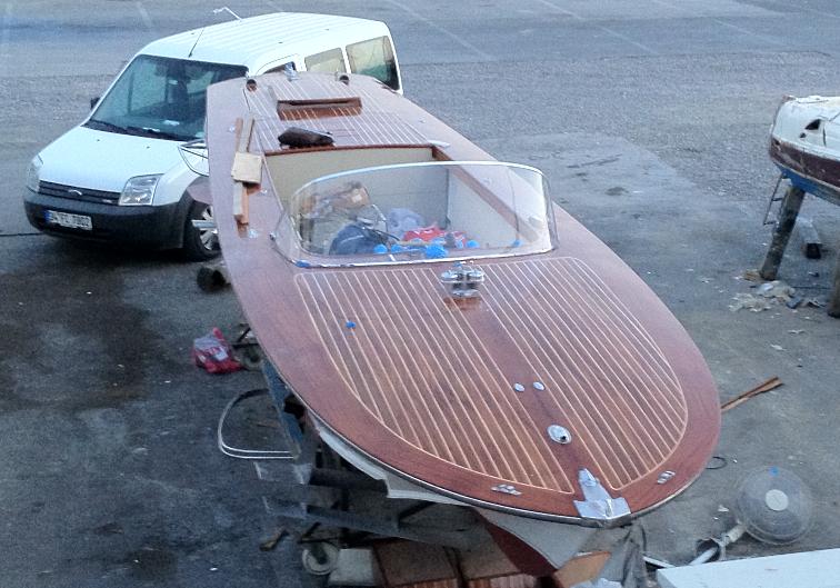 The wooden deck design was copied and/or refined from other Volgas or Rivas. We started with the edges where there used to be the rub rails.