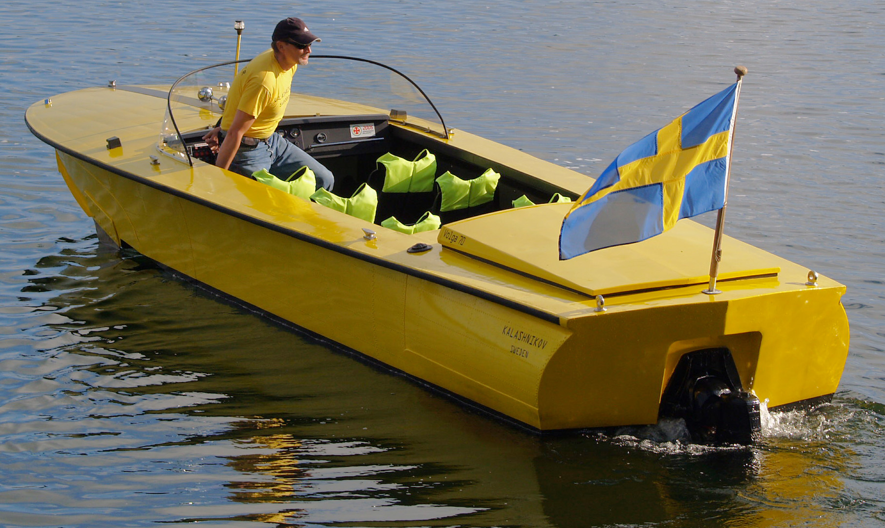 I´m owner of a Volga 70 since 2004. It´s one of the "exportmodels" from the beginning with Volvos MD32 and sterndrive model 270. I have changed to a Volvo AQD40A and a 280. It gives her a top speed of aprox 40 knots and a running speed for 30-32 knots. Already from the beginning I produced a trailer for launching direct in water by my own. It was very easy and it works well. It´s only two 2" steeltube for sliding and some other stuffs.