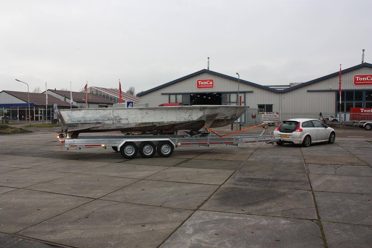 I'm really happy how it turned out. It has become an 11 meter long 3 axel trailer, and ways 1100 kg. A bit overdone and to long for our light volga's, but now i can transport a lot of different kinds of boats.