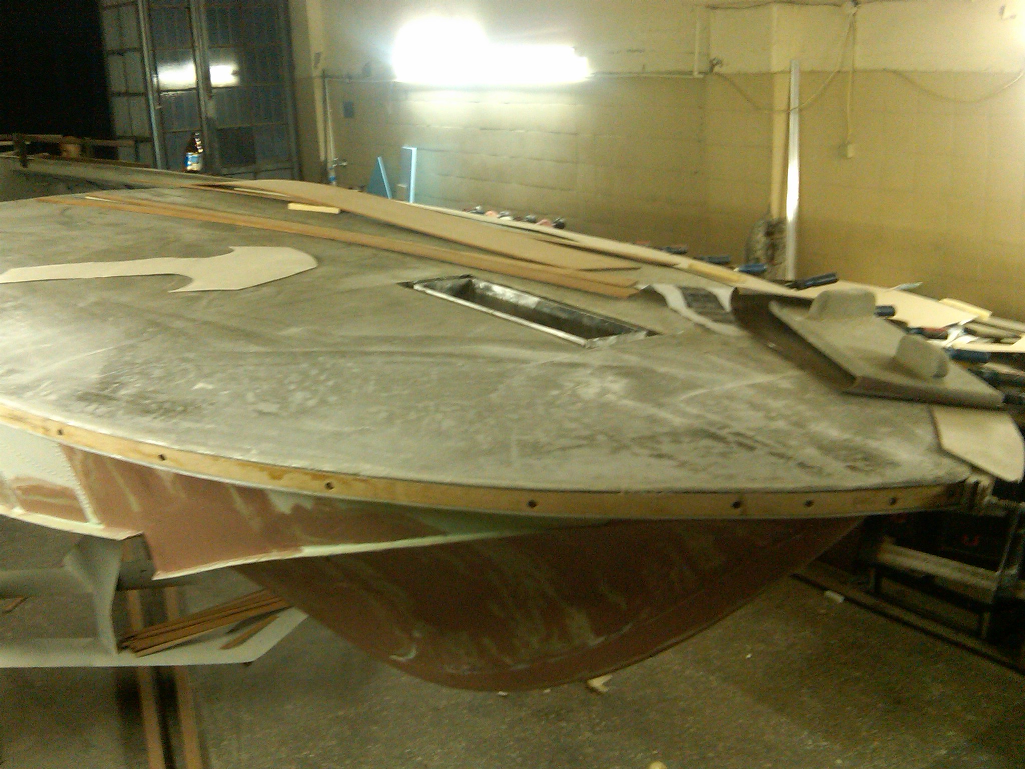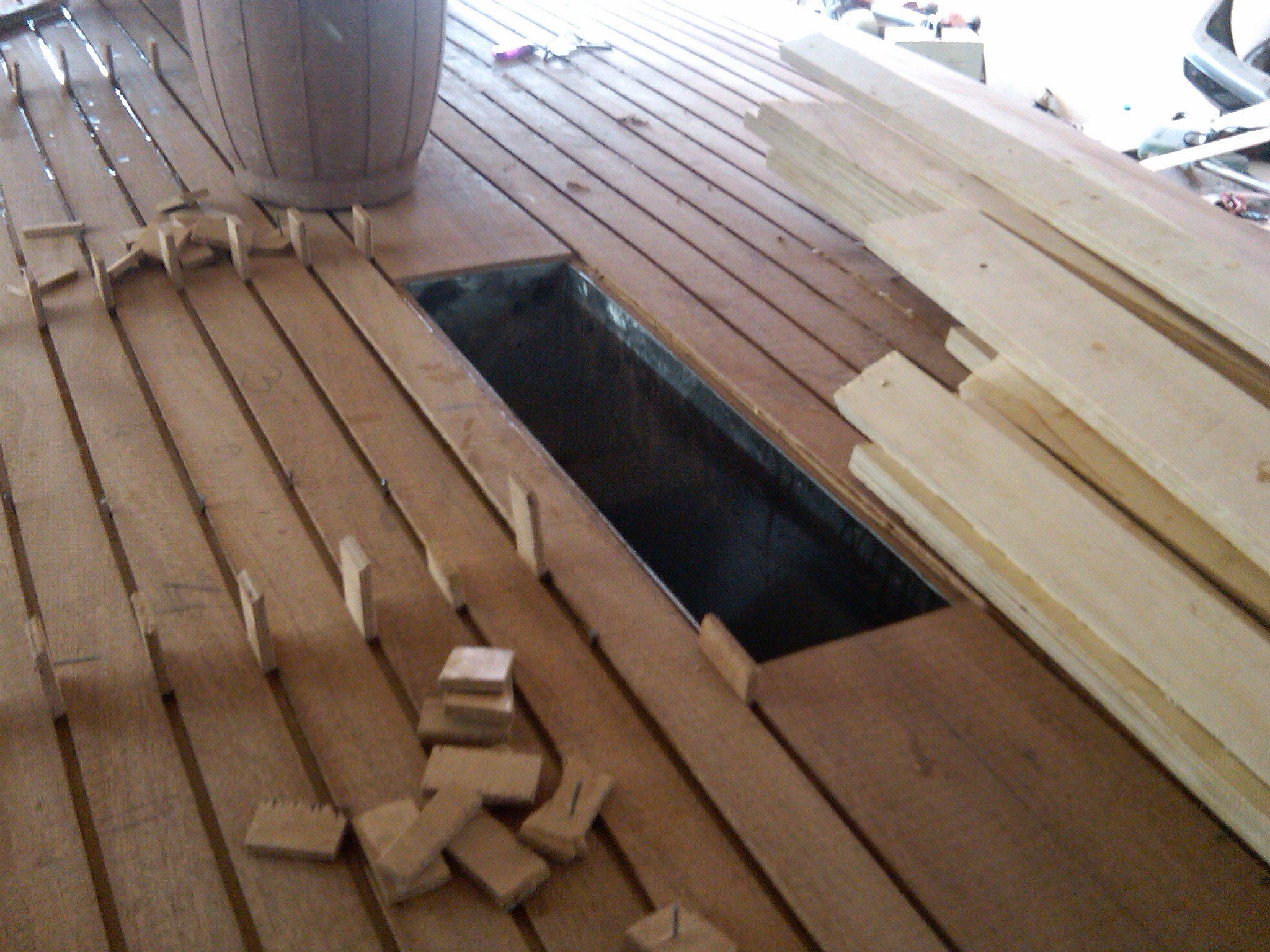 The chrome box is being placed inline with the deck's intermediate line. It will receive a wooden frame and a wooden hatchcover. More will follow soon...