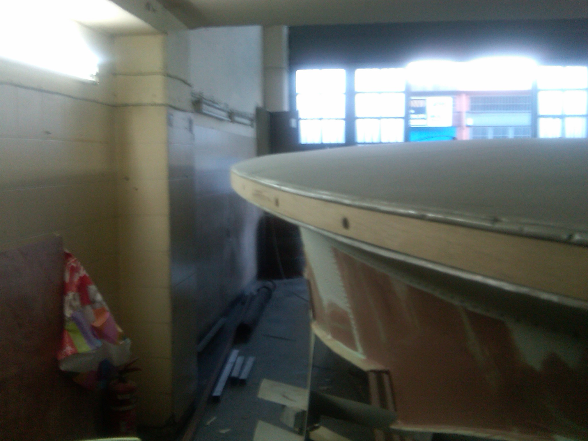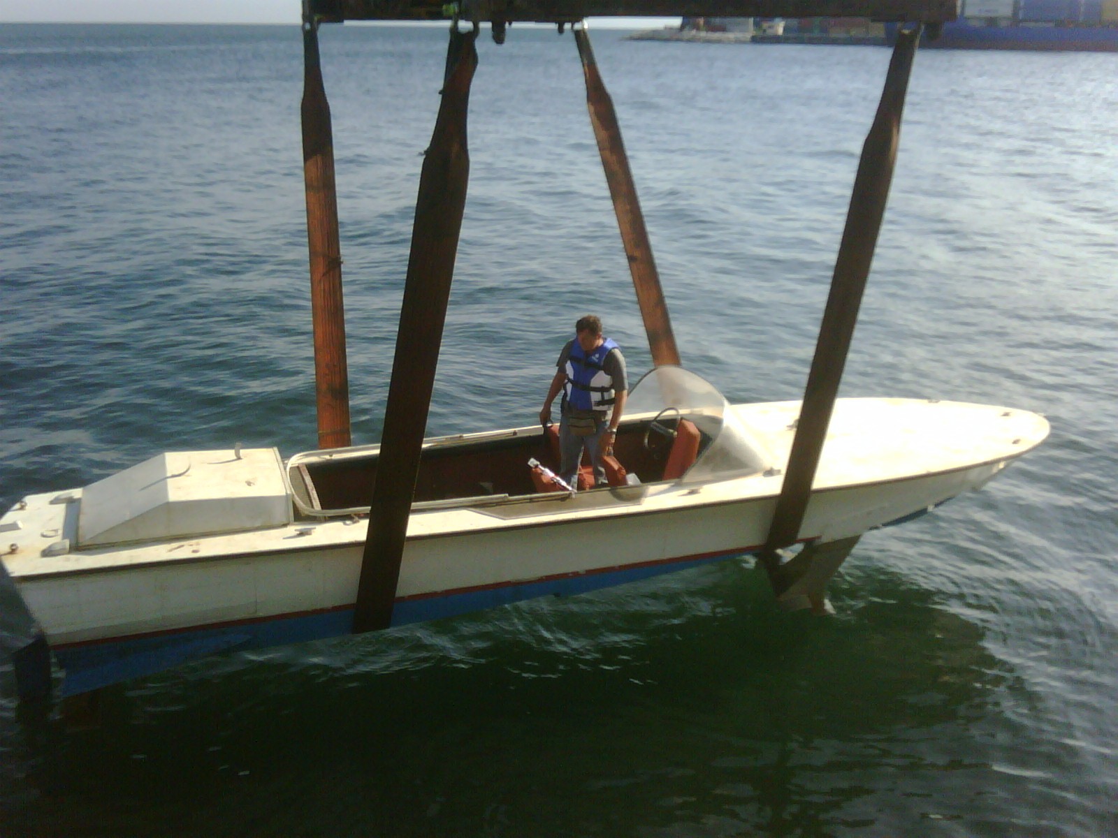 The boat was in a very bad condition after the transport from Batumi. Deck was bumped at several places, paint was so old and top coating was of poor quality cracked and dirty.