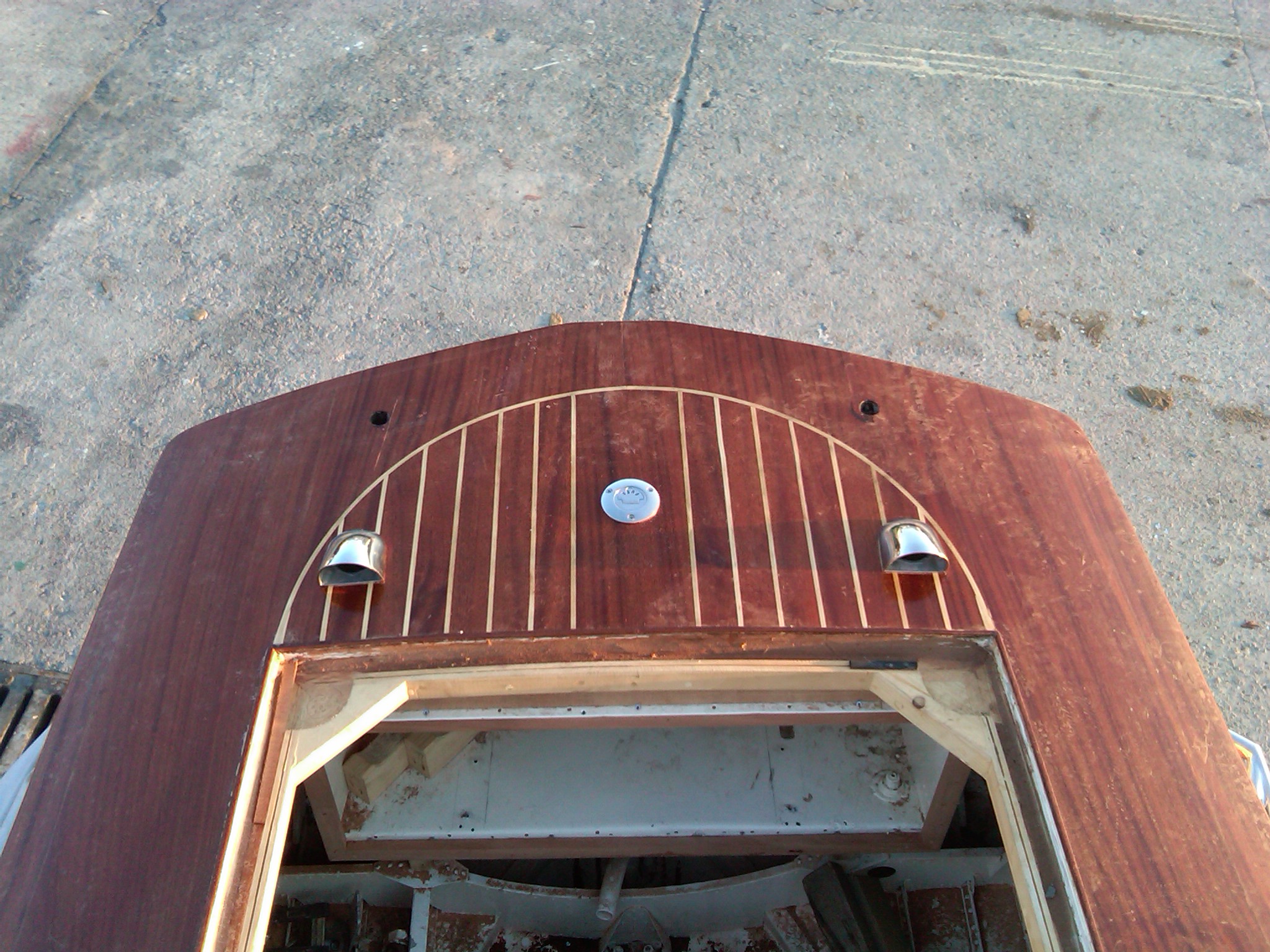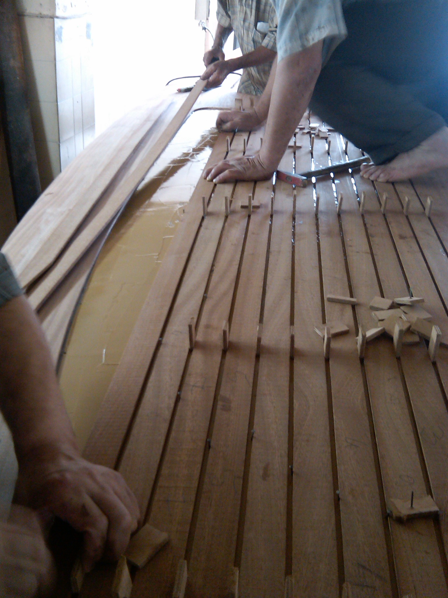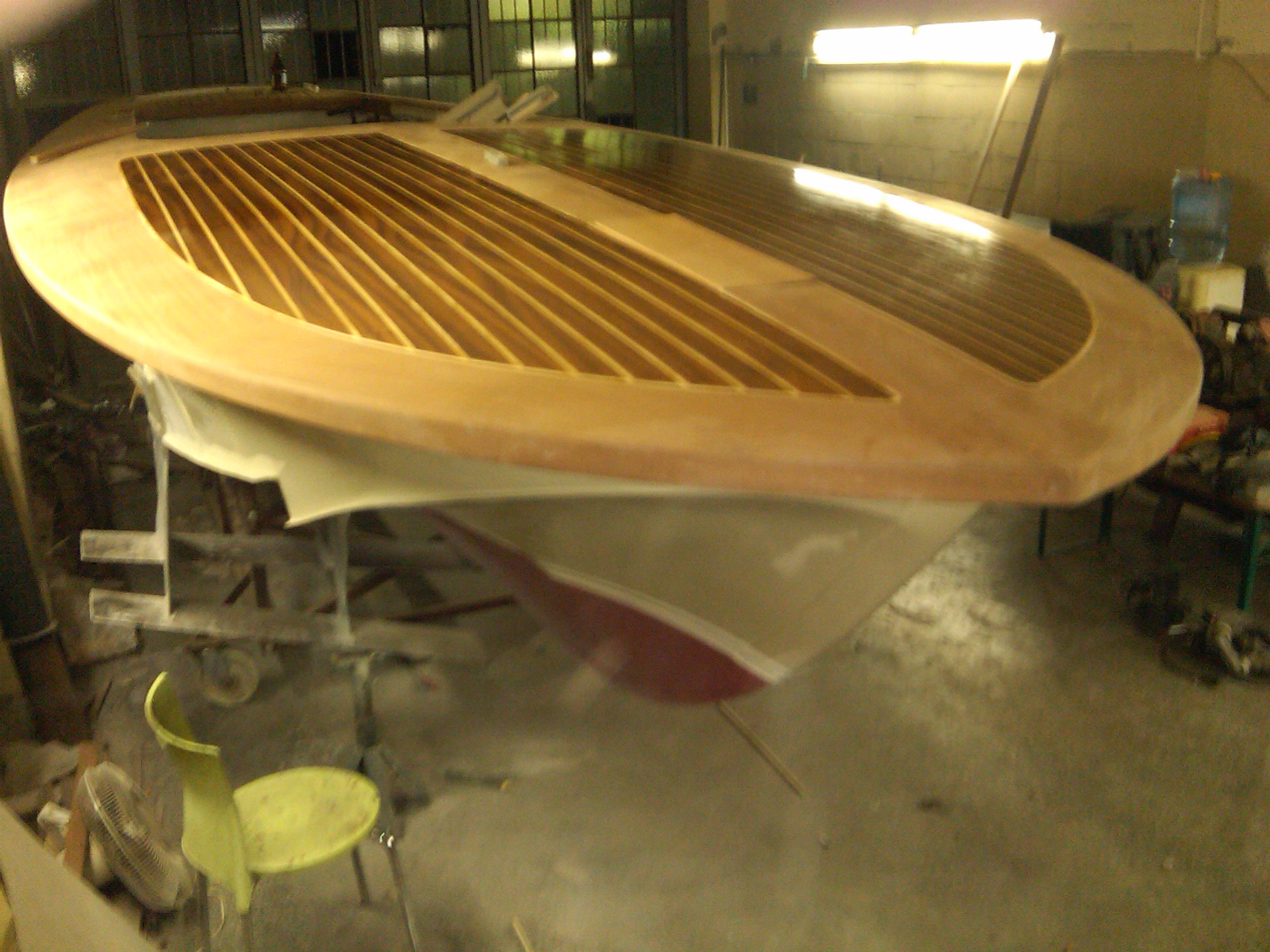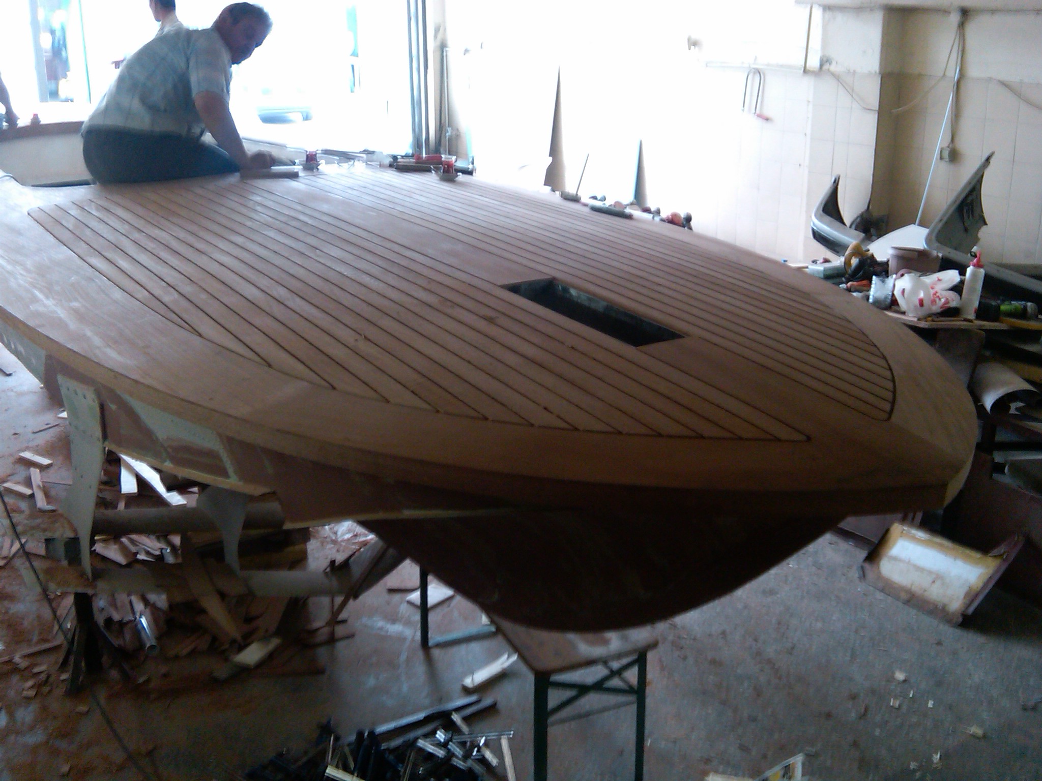 The wooden deck design was copied and/or refined from other Volgas or Rivas. We started with the edges where there used to be the rub rails.