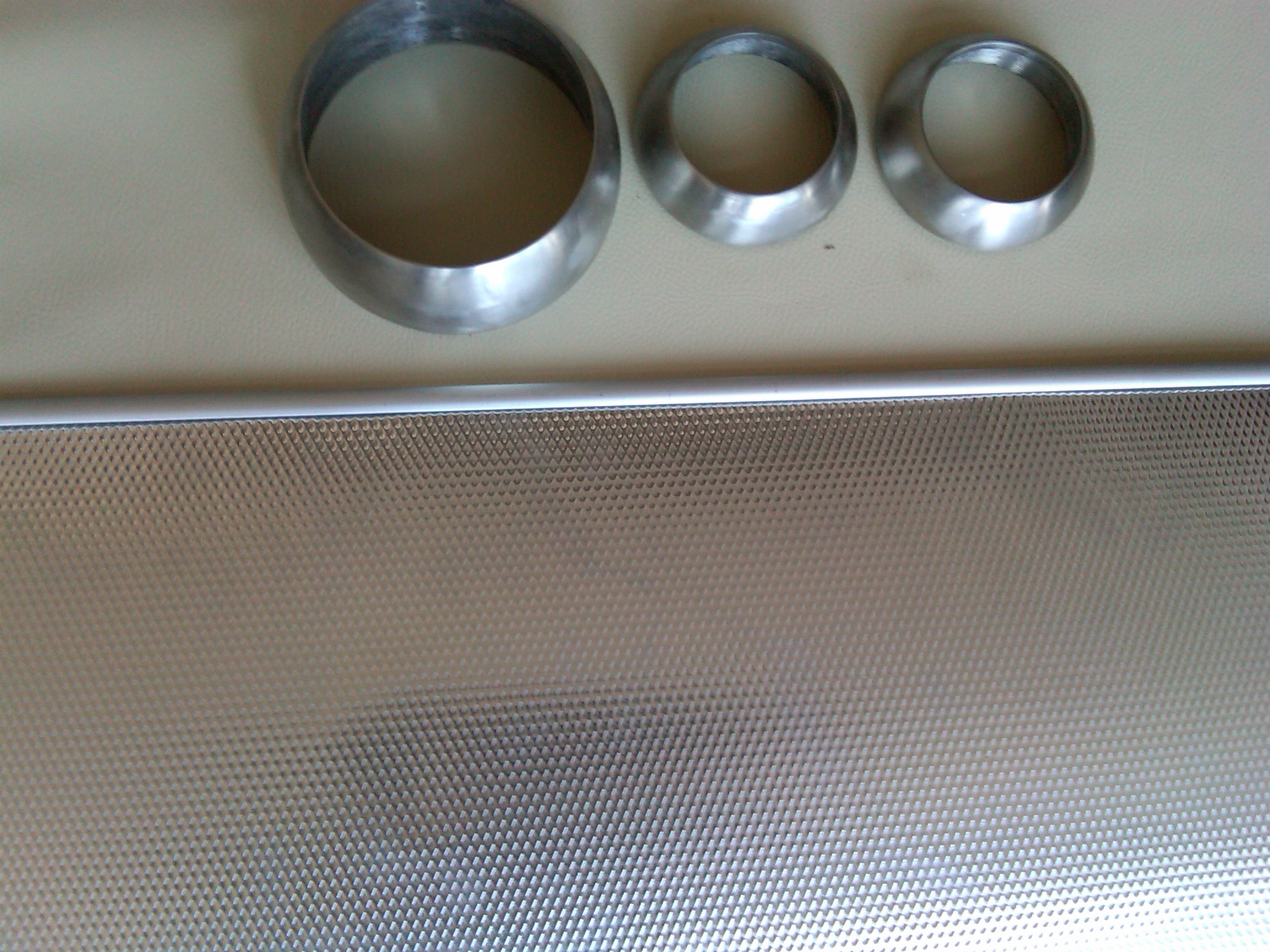 The leather and the aluminium is divided by a thin aluminium strip profile.